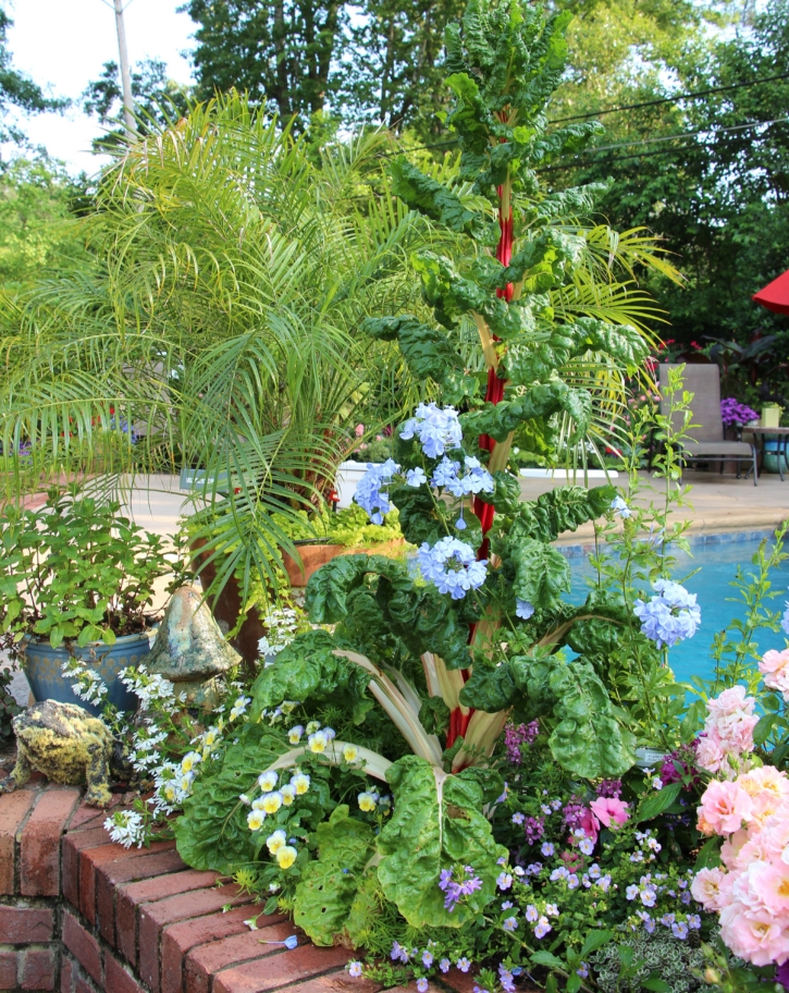 Sheri describes her flowerbeds as “riotous with color and levels.”