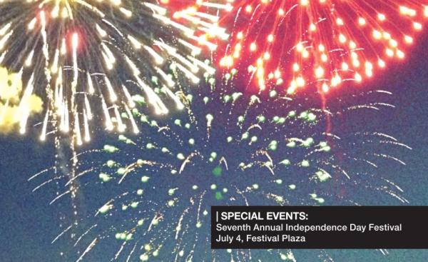 p.m. in Festival Plaza with fireworks at 9 p.m.