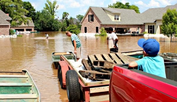The sandbag walls were not tall enough to keep the river out so Loftin and Horrell reached out to the public for sandbags and help. Additional sandbags were needed to take the wall up, and manpower was needed to transport the sandbags across over 6 feet of riding red surrounding the home and to monitor the integrity of the current sandbag walls while watching for water breaches.