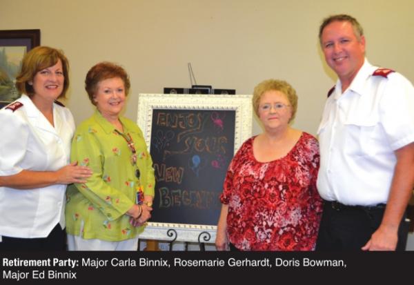 Retirement Party: A retirement party for Doris Bowman, a longtime employee of the Salvation Army, was held Sept. 11 at the Salvation Army. She has worked at the Shreveport office for 26 years and in the Salvation Army a total of 47 years, having been an officer with the rank of major. Bowman was Saints Alive! senior group coordinator and kitchen supervisor.