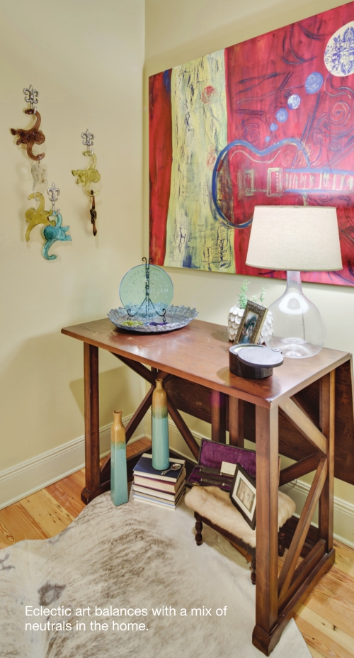 Lots of family pictures, fleur-delis accents and Louisiana pelican decorations highlight the space and add Marshall’s personality to the home. She likes for her home to be a reflection of her and her history and feel inviting to family and loved ones when they are visiting. Having lots of family photos on display was a main priority for the design.