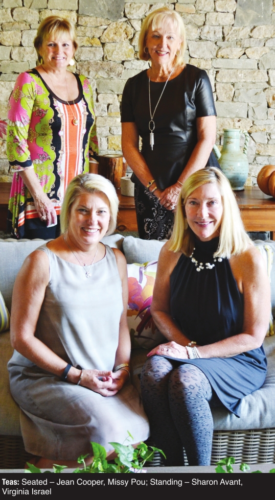 Teas: Jon and Michele Q-Petersen welcomed guests into their home Oct. 2 for the annual Three Guild Membership Tea. Guests gathered inside and in the courtyard. Presidents of each group are Shreveport Little Theatre, Sue Wyche; Shreveport- Bossier Opera, Susannah Poljak; and Shreveport Symphony, Ann May.