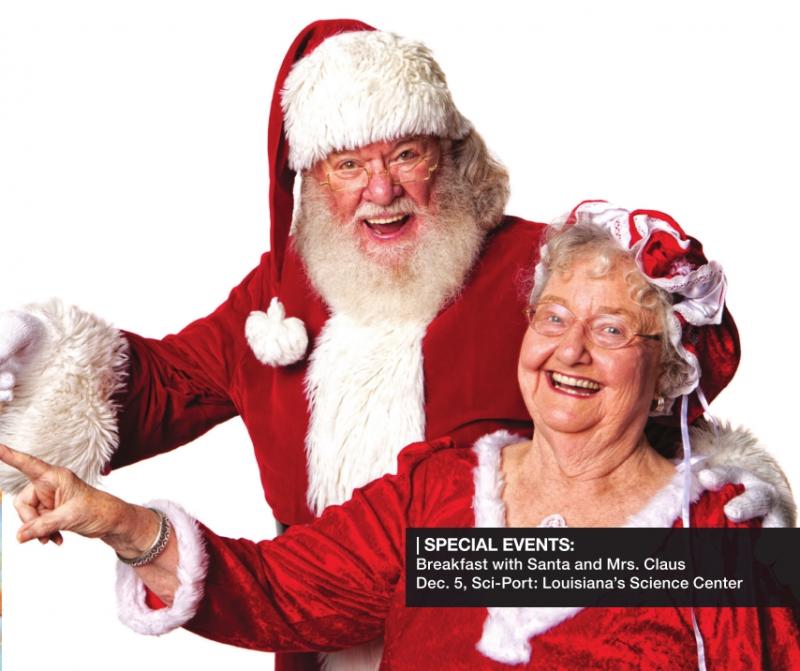 DEC. 5: BREAKFAST WITH SANTA AND MRS. CLAUS, ’Tis the season to be jolly! Kick off the holidays with Sci- Port’s yearly tradition that brings families and friends together for food, fun, science and Santa! Breakfast is from 8 to 10 a.m. Sci-Port member tickets are $15 children, $18 adults; nonmember tickets are $18 children, $20 adults. Price is all inclusive: Food, activities, IMAX movie and photo that will be sent by email. Go to www.sciport.org.