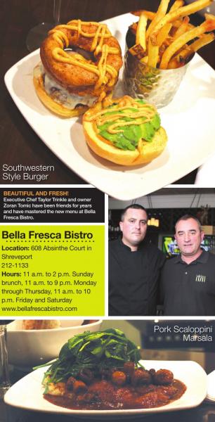 Bella Fresca Bistro, located near Twelve Oaks at 608 Absinthe Court in Shreveport, is an offspring to Bella Fresca owned by Zoran Tomic. After years of working in the restaurant industry, Tomic took over Bella Fresca and in 2013 opened Bella Fresca Bistro.