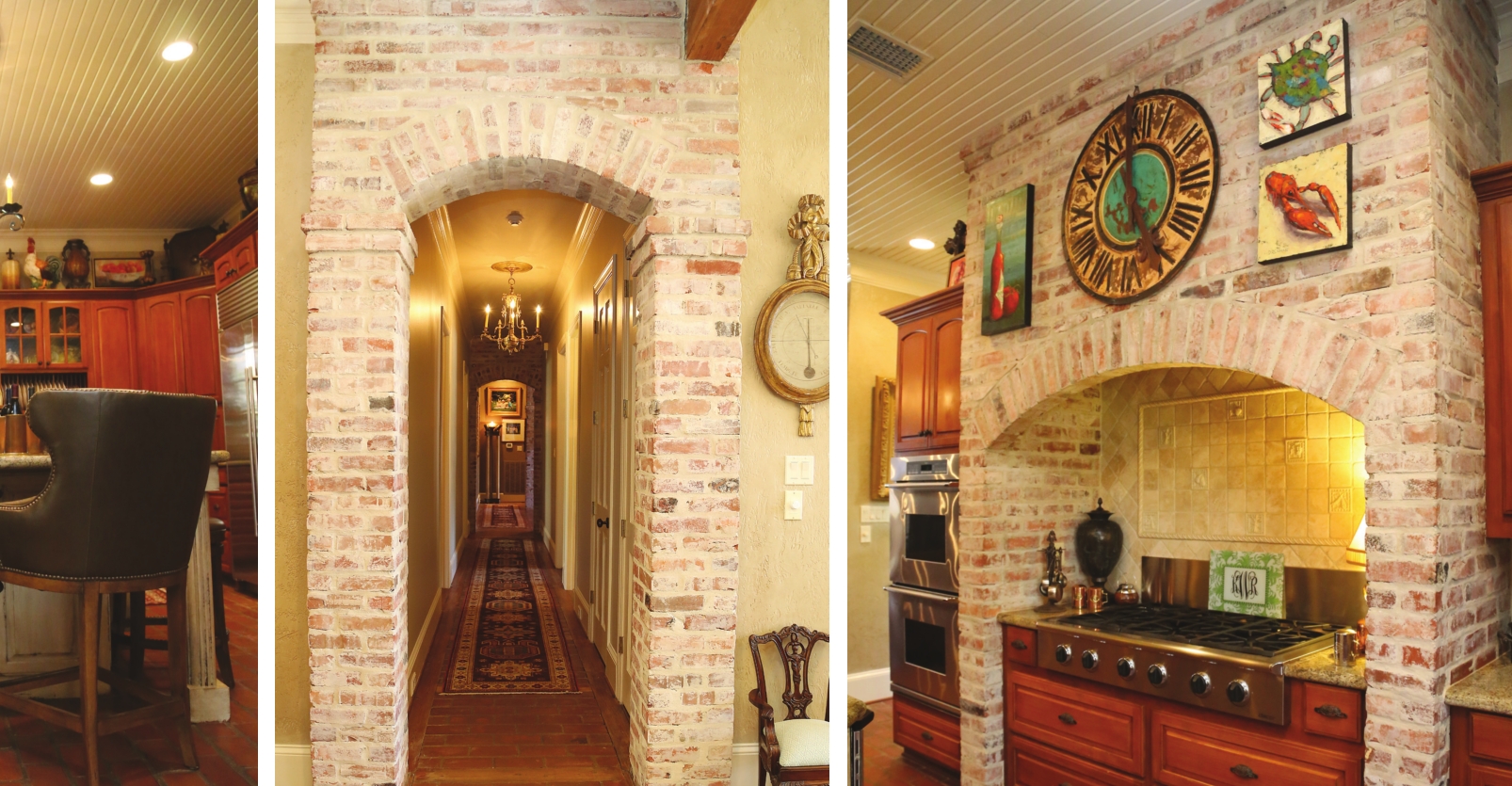 the bricked alcove that houses the cook top. A hand-painted faux clock