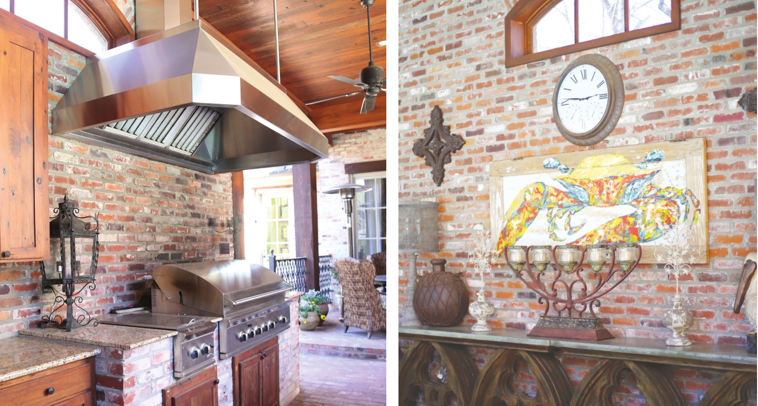 piece of artwork purchased at the Revel is hung in the outdoor kitchen.