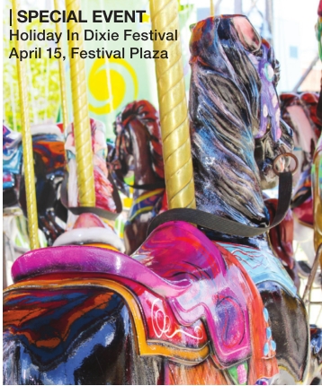 APRIL 15-24: HOLIDAY IN DIXIE, Celebrate the life of the Shreveport-Bossier community in this historic 10-day festival in downtown Shreveport’s Festival Plaza. The HID Parade begins at 5:30 p.m. on April 16 in Downtown Shreveport. Visit www.arklatexambassadors.com for carnavial and band performance hours and carninval ride ticket prices.