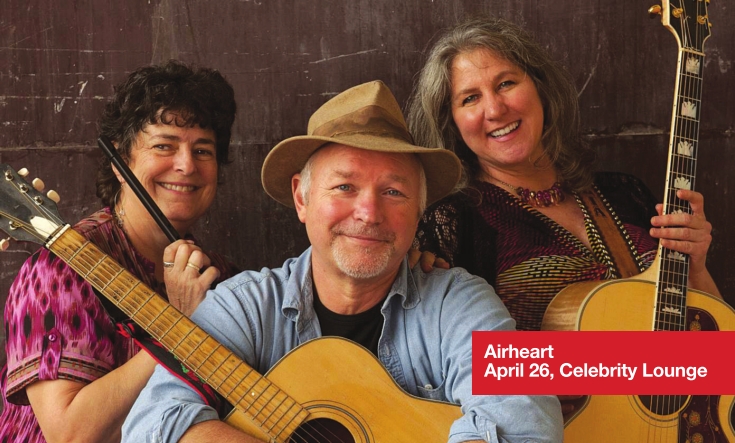 23; Airheart, April 26; What the Funk?, April 27; Live 5 Band, April 29;