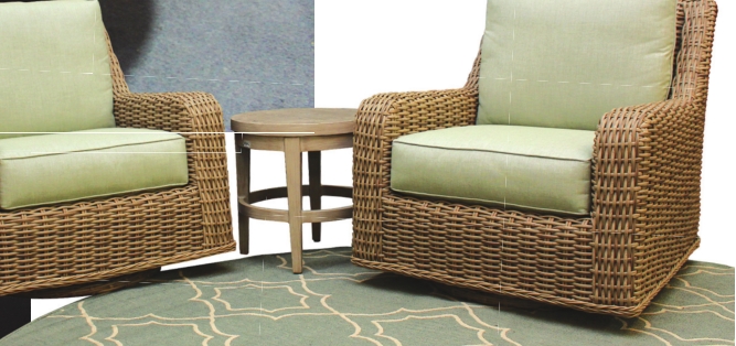 Most popular? Gray finished wicker-like pieces in a modern, linear style. Gray is in, and the materials are extremely durable.