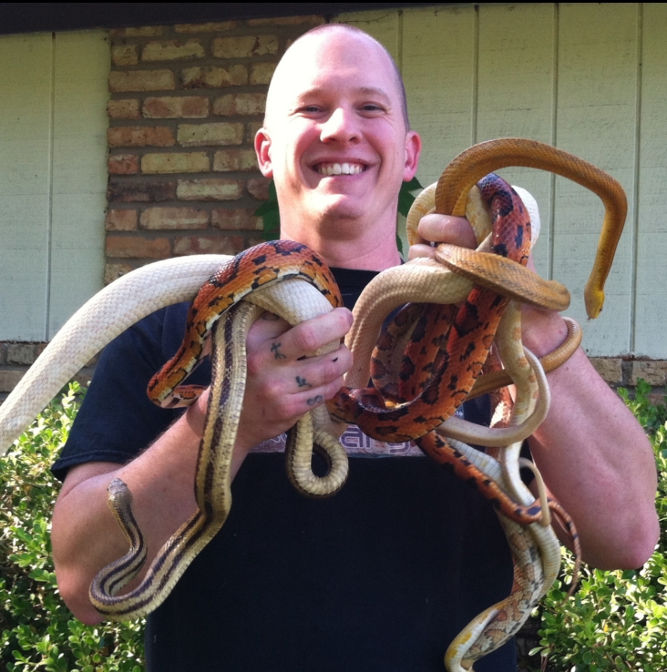“Throughout all of those years, my interest and love for snakes continued to grow. Several years after I got married, I bought my first real pet snake, a baby corn snake. All of a sudden, it seemed like my enthusiasm exploded. My wife was very supportive, and now she and my kids love snakes, too. Snakes are actually our best pets.