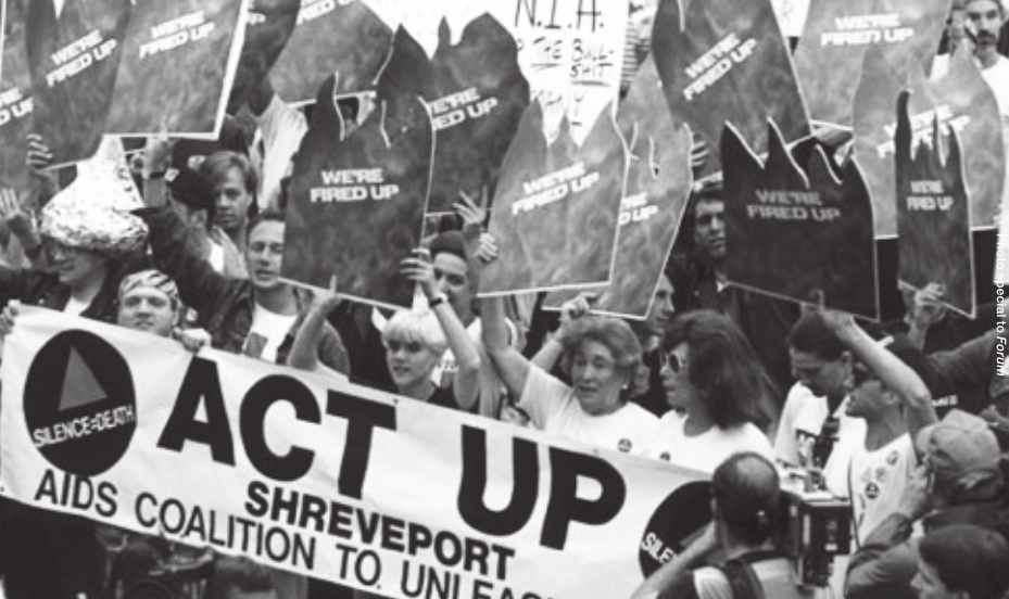 Taking its cues from the other larger chapters around the nation, ACT-UP Shreveport employed the same attentiongrabbing protest tactics that were successful in New York and San Francisco.