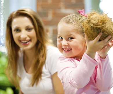 prepare foods in the kitchen. Two-year-olds can wash foods with mom and