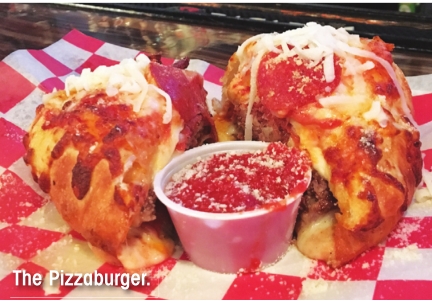 Stacked fries and cheese logs and pizza burgers, oh, my!