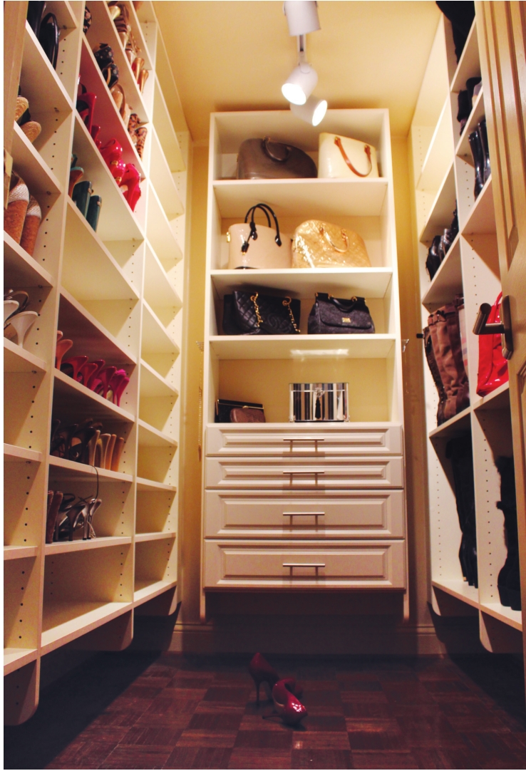 HANDBAGS Handbags are one of your biggest fashion investments – treat them right. When designing a closet, I always keep the purses in mind, spacing the shelves to accommodate them. I also offer customizable solutions like shelf dividers, which keep clutches and smaller bags upright and easy to spot in the lineup. Insider Tips: