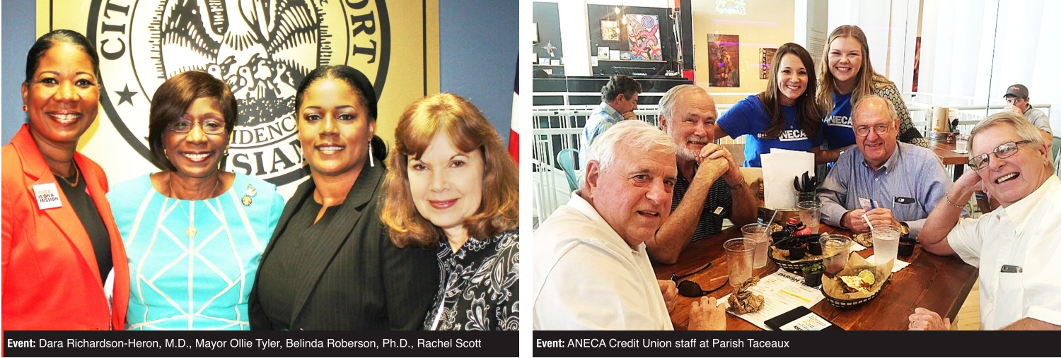 The Krewe of Elders celebrated Coronation XIX on Sept. 16 at the Knights of Columbus Hall in Bossier City. The Eric Craig Band performed as guests enjoyed a barbecue buffet, silent auction and bar. The glitz and austerity of the event was rivaled only by the dapper black-and-silver attire worn by those in attendance. Mardi Gras royalty were crowned, with Rick Turner and Lawanda Turner taking the titles of King and Queen for 2017. – Special to The Forum YWCA board members and supporters met with Mayor Ollie Tyler Thursday, Sept. 22, to discuss the social, health and economic factors women face in Northwest Louisiana. – Special to The Forum ANECA Federal Credit Union showed up at Parish Taceaux at 708 Texas St. in late September to surprise customers and pay for their meals. The visit was part of ANECA’s monthly Pay it Forward #theANECAway campaign. As each patron’s meal was being paid for, they were given a small card that read, “Compliments of ANECA Pay it Forward #theANECAway,” as well as a suggestion for how they could keep the momentum going and pay it forward, such as “plant a tree,” “put money in someone else’s parking meter,” “open a door for a stranger” and “pick up lunch for a busy coworker.” ANECA is a not-for-profit community credit union. – Special to The Forum