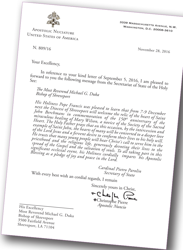 their faith by bringing the heart of a saint to Shreveport. On Dec. 7,