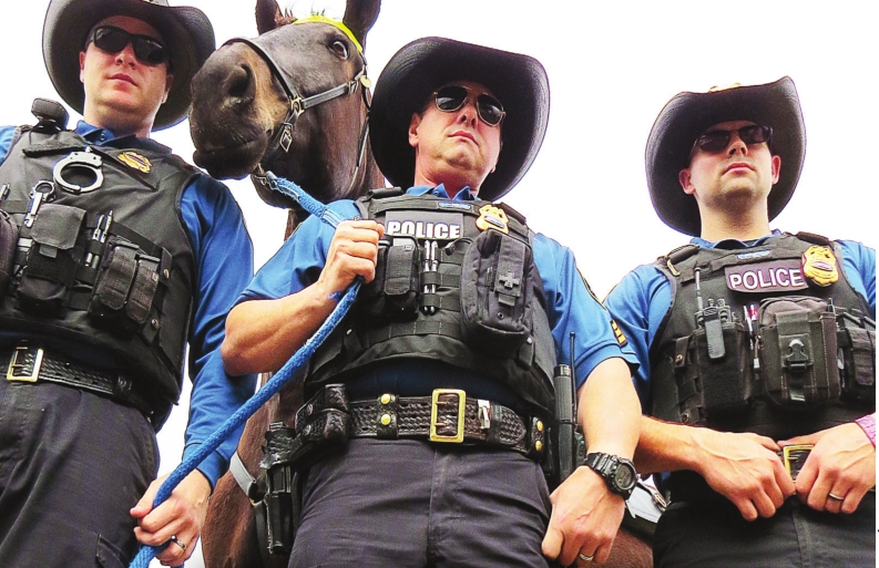 “A mounted officer, in a crowd, can do the work of 10 officers on foot,” said Cpl. Ryan Owen. “The size and strength of the animal, along with the coordination between the mounted officers, make up a force that cannot be matched by a crowd.”