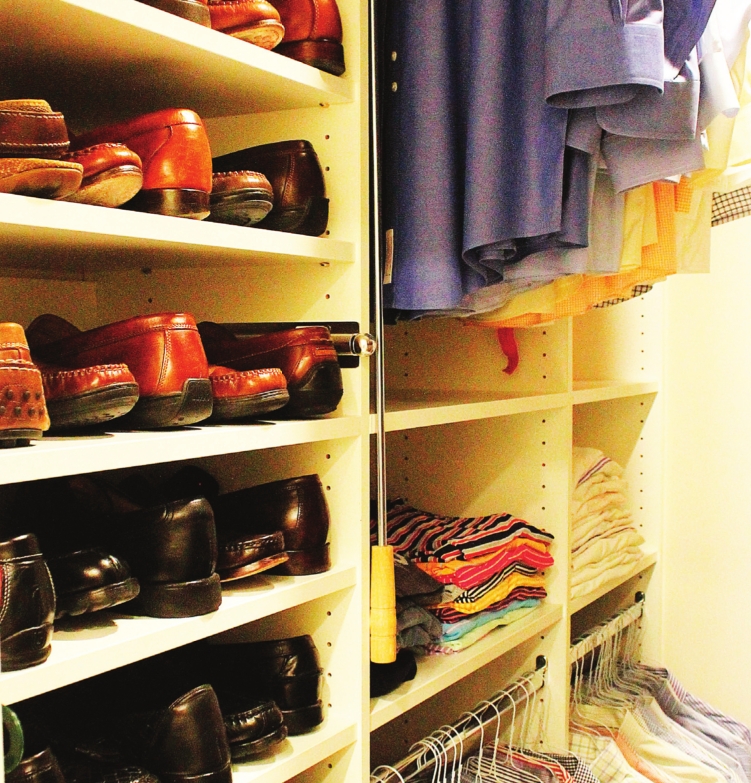 2. Arrange each category by color, from light to dark. For example, begin with your white tops. Then arrange your beige, yellow, red, green, blue, brown, gray, and end with your black tops. Expect surprises. Who knew you had 20 white shirts? This system may seem a bit obsessive-compulsive at first, but it works. The advantage is that every item is visible and accessible. You should be able to walk into your closet blindfolded and put your hands on your white tops. You should be able to walk into a clothing store, close your eyes and visualize your current inventory of clothes in your closet.