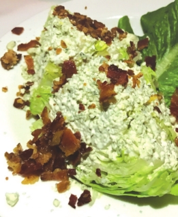 What we tried: Wedge salad: First, this salad starts with a half a head of lettuce. It’s almost a meal unto itself. Then it’s topped with bacon, blue cheese crumbles and green onions, and in my case, housemade ranch dressing