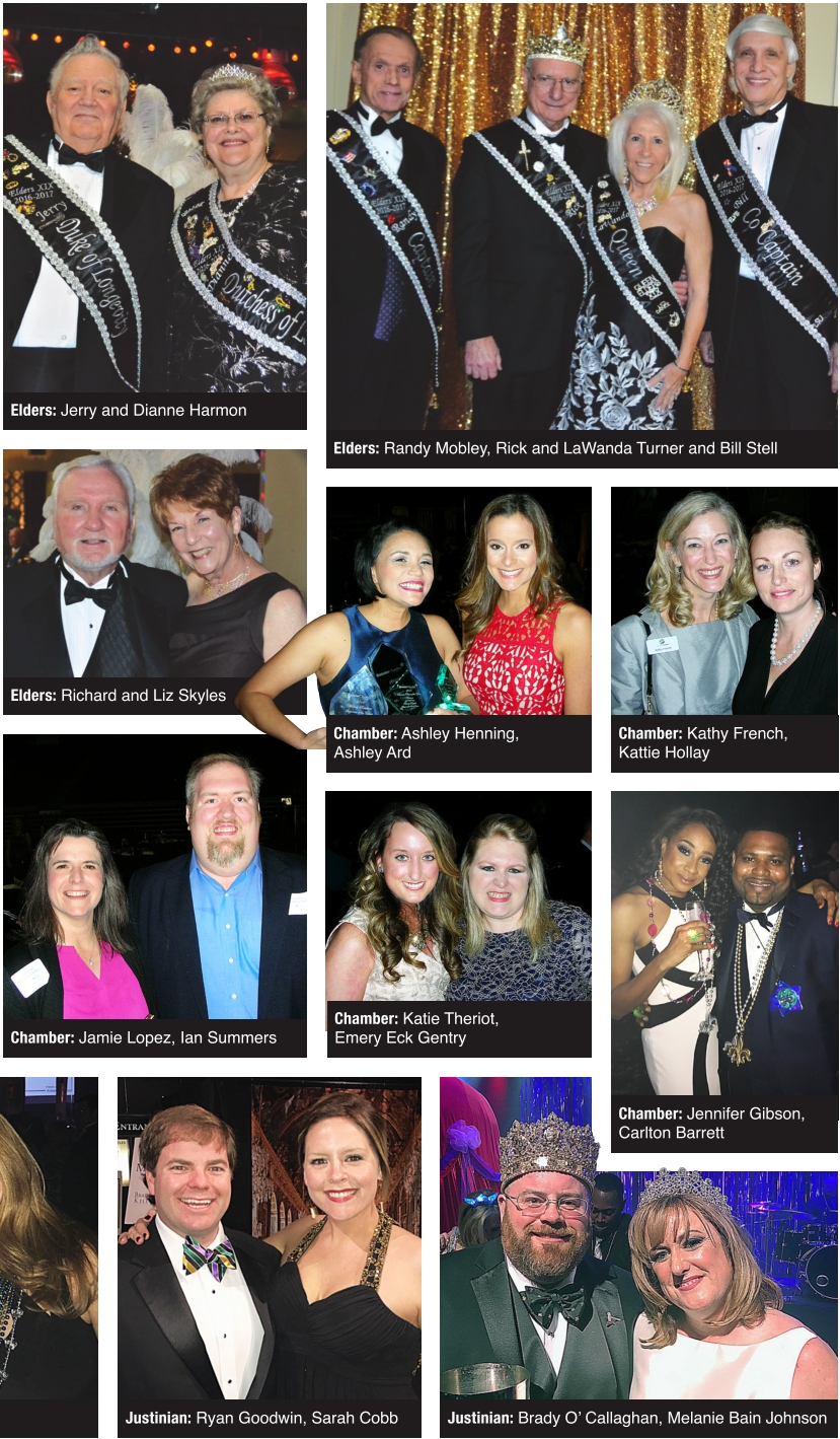 The Krewe of Elders Grand Bal XIX was held at Events on the Red on Jan. 28. Puttin’ on the Ritz included a skit where the queen, a.k.a. the Black Widow, came into the speakeasy trying to flirt with one of the men already taken. She started dancing with a new guy when her boyfriend came in and caught them. The guy tried to leave, but was grabbed by the boyfriend. The Black Widow pulled a gun and shot the boyfriend. “Diva Dianne” Harmon, duchess of longevity, sang “It Had To Be You” (along with Doris Day) to husband Jerry Harmon, duke of longevity, who was Salty Sailor Jerry. Ambush provided music. Captain is Randy Mobley, and king and queen are Rick and LaWanda Turner. Krewe of Elders floats will ride in the Highland parade. – Mary Ann Van Osdell The floor of the CenturyLink Center was filled with nearly 700 business professionals as the Bossier Chamber of Commerce hosted its 69th annual gala on Jan. 31. Multiple awards were handed out, including Business of the Year to Praeses, Small Business of the Year to Lauve’s Pediatric, Business Person of the Year to Margaritaville’s Barry Regula and Small Business of the Year to Rosewood Home Market. David Specht served as 2016 chairman of the board, and Terry Moore of Merrill Lynch will serve as the 2017 chairman. – Mark Crawford On Jan. 27, the Krewe of Justinian hosted their annual bal at Horseshoe’s Riverdome. This year’s royalty includes Prince Kip Haines and Princess Gabrielle Cox, Dukes Weber Hill and Mark Manno, Duchesses Allie Aiello and Natalie Howell, and Queen XXIII Melanie Bain Johnson and King XXIII Brady D. O’Callaghan. This year’s captain is John Bokenfohr. In addition to the royalty presentation, there was a silent auction, which included items like round-trip tickets on GLO Airlines to New Orleans and VIP passes to JazzFest, a Saints football signed by Drew Brees and a cochon de lait party for 30 people. – Mark Crawford See also