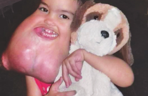Melyssa Delgado Braga, a 3-yearold patient from São Paulo, Brazil, is recovering from surgery to remove a large, rare facial tumor. The child’s journey to the United States for treatment was made possible through a post on a Brazilian news site that native Brazilian Celso Palmieri, DDS, noticed while reviewing online publications of his home country.