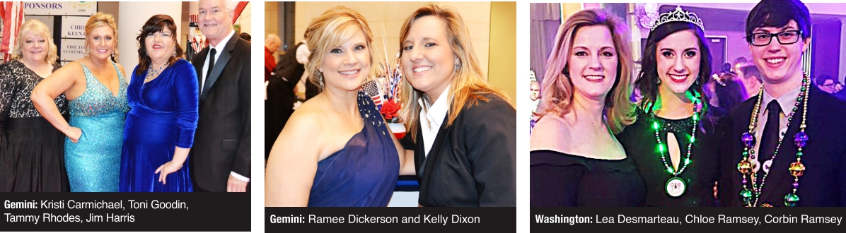 The Krewe of Gemini celebrated Grand Bal XXVIII on Feb. 11 at the Shreveport Convention Center with a Salute America theme. Captain Mary Louise Stansell represented the Statue of Liberty. King Jack Murphy and Queen Karen Murphy represented the Spirit of America. Duke of Arkansas Keith McDonald and Duchess of Arkansas Karen McDonald represented saluting to all branches of the military. Duke of Louisiana Ted Bryson and Duchess of Louisiana Cathy Bolt represented the Louisiana Purchase, and Duke of Texas Roger Lites and Duchess of Texas Sherri Underwood represented Independence Day. – Mary Ann Van Osdell The Mystick Krewe of Louisianans hosted the 69th Washington Mardi Gras Celebration at