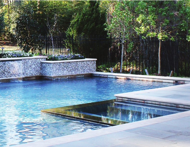 Terry wanted a diving area, an area for volleyball and a shallow area for the little ones, as well as a hot tub near the house. “That was a lot to ask for in one pool and to function so that it extended from our outdoor area,” Mary Ann said. “But he was able to come up with a shape that addressed each of our requests and created a really stunning pool for us.”