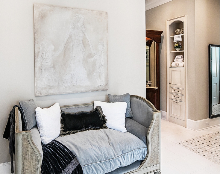 Carrie Rodie and Jamie Davis of The Finishing Touch in Bossier City also played a big part in the final design of the house. They hand-painted the dining room, the powder bath, the Elstons’ daughter’s bedroom and the master bath with a unique, beautiful faux painting technique that resembles marble and tile. The effort took significantly hard work, and the results went a long way toward punctuating the luxurious, fresh feel of the home.