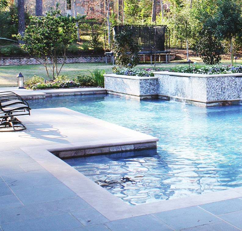 Terry wanted a diving area, an area for volleyball and a shallow area for the little ones, as well as a hot tub near the house. “That was a lot to ask for in one pool and to function so that it extended from our outdoor area,” Mary Ann said. “But he was able to come up with a shape that addressed each of our requests and created a really stunning pool for us.”