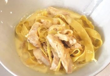 the made-in-house pasta, and I added seasoned grilled chicken to my