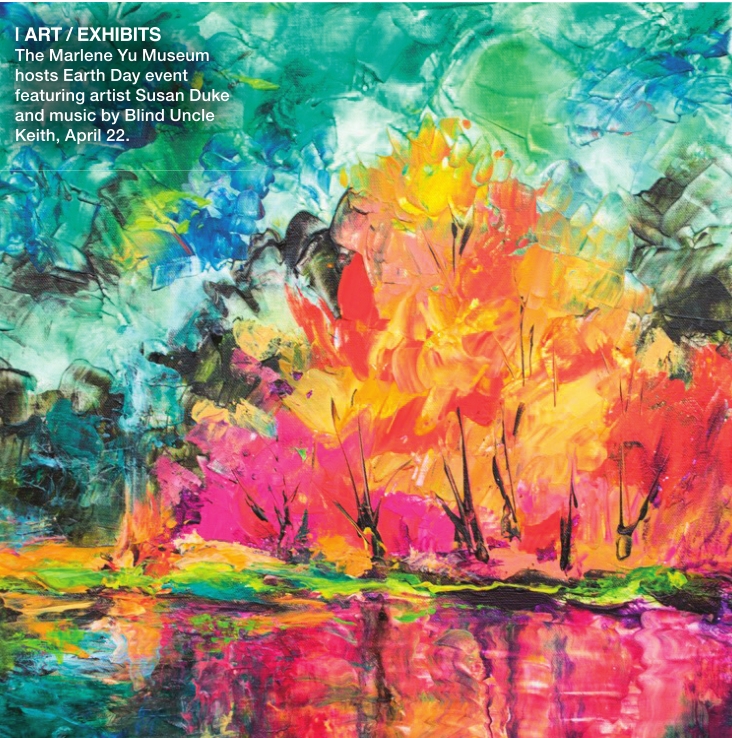 APRIL 22: “EPHEMERAL EARTH,” Rainforest Art Foundation presents Susan Duke’s “Ephemeral Earth” on Earth Day with musical accompaniment by Blind Uncle Keith. He will be performing Pete Seeger covers, peace songs and some original songs. $10 donation. 2-5 p.m. Marlene Yu Museum, 710 Travis Street, Shreveport. Call 717-9111.