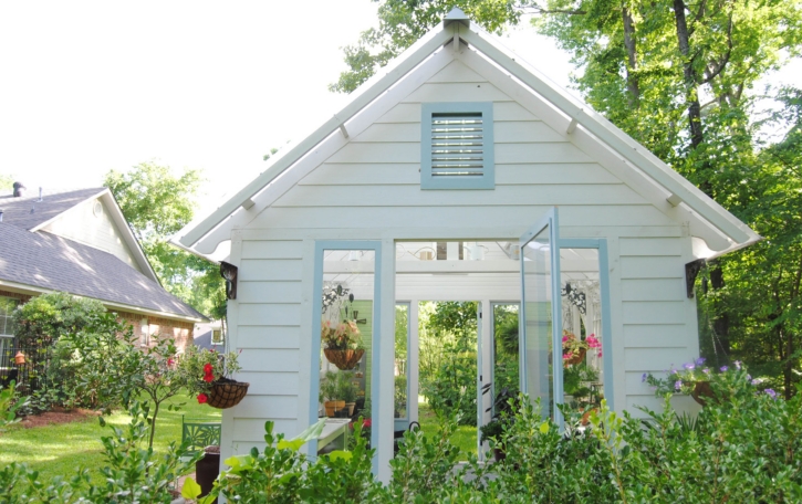 “I’ve wanted a greenhouse forever,” said Patty, a florist by trade who is winding down a bit on the business side of things so she can enjoy their lush garden at home. “I knew I wanted it girly, bright and cheerful.”
