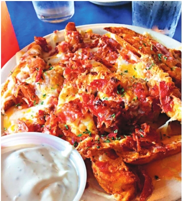 Sloan is self-taught and enjoys experimenting in the kitchen, as evidenced by one of their most popular entrees, the Cajun Sampler, featured in Southern Living magazine. The dish starts with a cup of gumbo, followed by a platter of blackened catfish, shrimp etouffee, fried crawfish tails, meat pies from Natchitoches, jambalaya and fried corn.