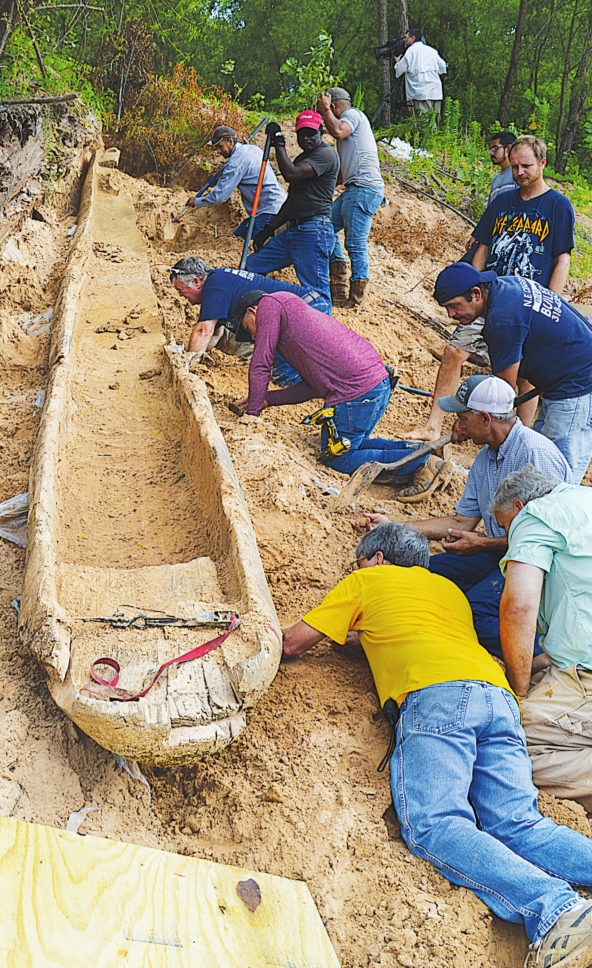 Twenty-one men, 10 hours of labor, a large number of vehicles, almost one helicopter and 30 hamburgers and fries. That’s what it took to help excavate what is believed to be the biggest intact Indian dugout in North America found by Jeanna Bradley and Robert Cornett of Hosston on the bank of Red River near Belcher.