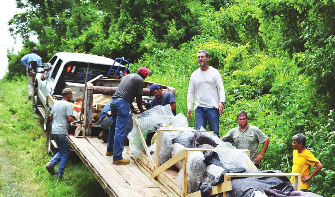 Paul Dickson supervised the “professional craftsmen” who crated the canoe in place and hauled it up a steep bank for loading in a Morris and Dickson truck for transportation. Dickson said a lot of pre-engineering was involved as well as spur of the moment decisions.