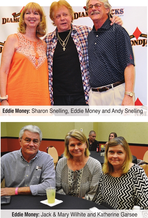Eddie Money showed off his talent in singing, playing the saxophone, harmonica and cowbell, as well as telling jokes as his concert at DiamondJacks on July 8. He apologized for being old and droopy to the VIPs, one who went to high school with the drummer’s wife. After singing “One More Soldier,” he recognized a sergeant he had met in the elevator who just returned from Afghanistan. He also asked fans to support Pets for Vets, a national nonprofit organization that rescues shelter pets and then trains and pairs them with American veterans who suffer from post-traumatic stress disorder or traumatic brain injuries and could benefit from having a companion animal.