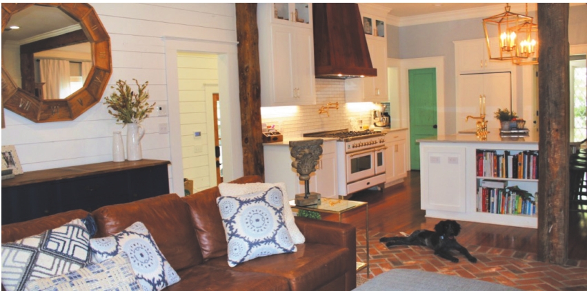 Rand Knicely was the contractor on the home remodel and also drew plans for the addition that went on the rear of the home. In the living room, sheetrock was removed from the walls to expose 100-year-old shiplap beneath. Jessica says she was tempted to leave the shiplap in its natural state, but ultimately chose to paint it white.