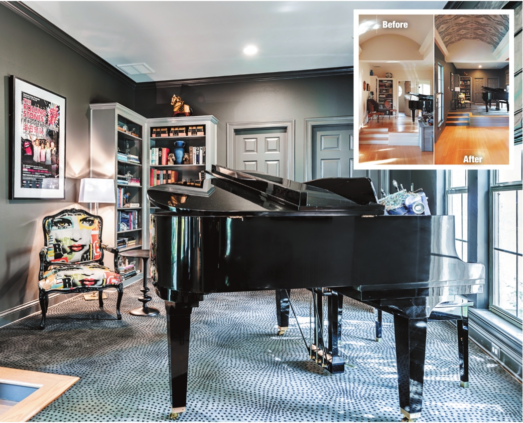 Shattuck said her husband was surprised to see the dramatic changes when he returned home. The front door was painted black, the hall and music room were dark, and the kitchen had been redone. It wasn’t finished, but work was well under way.