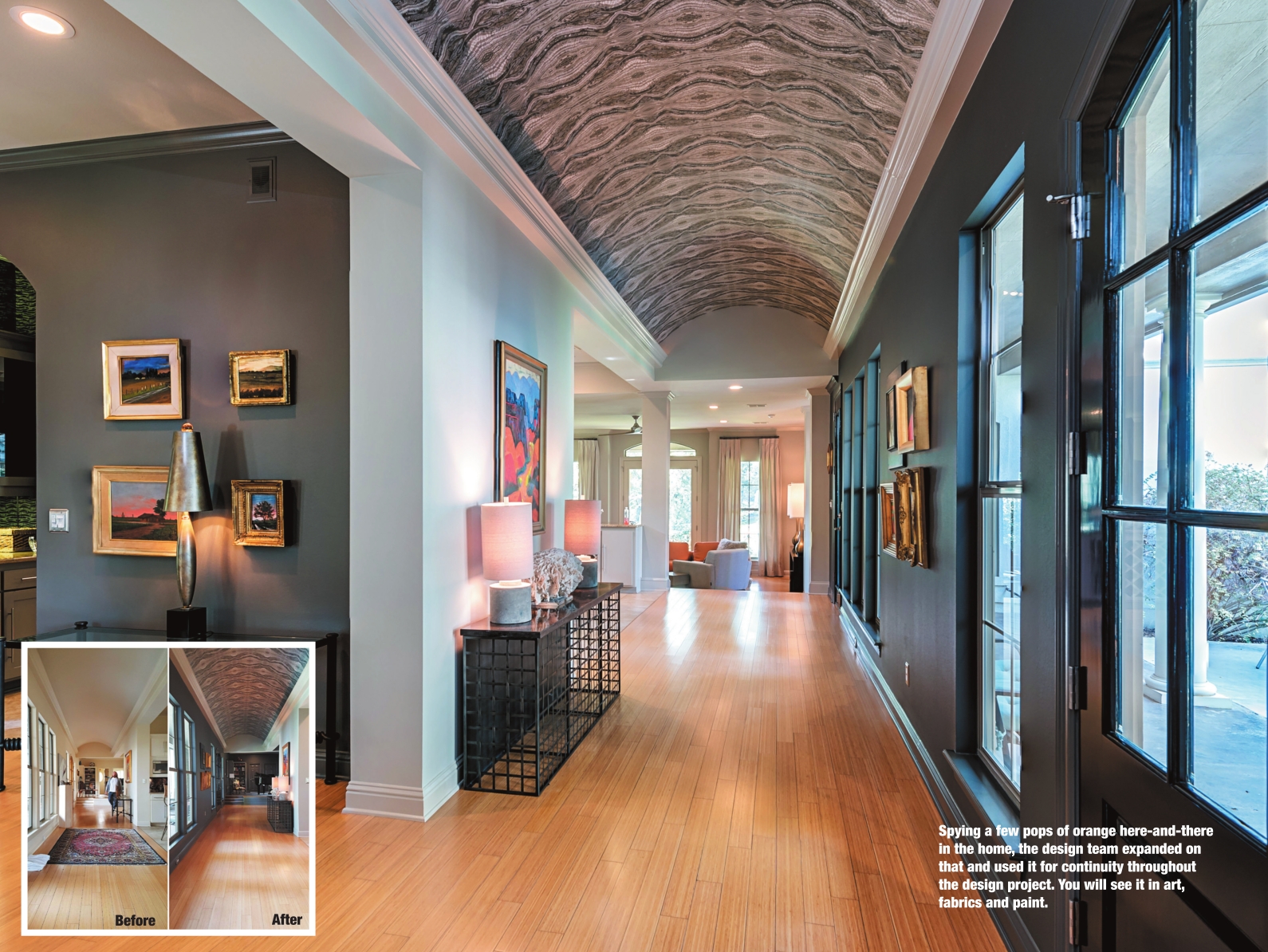 “I talk about repeating elements; well, that includes color as well,” said Griffing. “They had that Italian sofa down in the living room. Each room has a variation of that orange. It’s one of those things that you don’t know why it looks so good, it just does.”