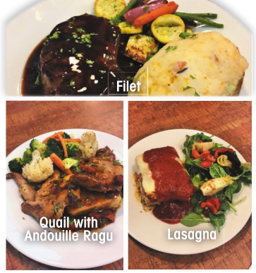 quail in a savory Andouille sauce, served over rosemary polenta with