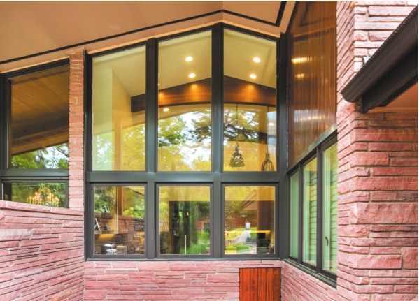 stone accent wall and a bank of new fulllength windows that offer
