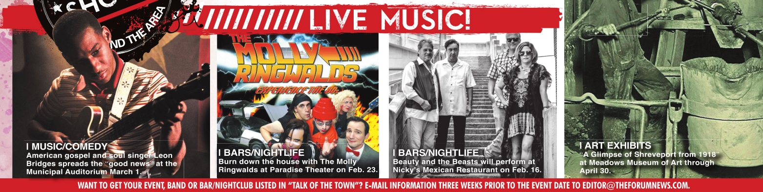 PARADISE THEATER: Molly Ringwalds, 8 p.m., Feb. 23. 777 Margaritaville Way, Bossier City. 855-346-2489. (Also see MUSIC/COMEDY.)