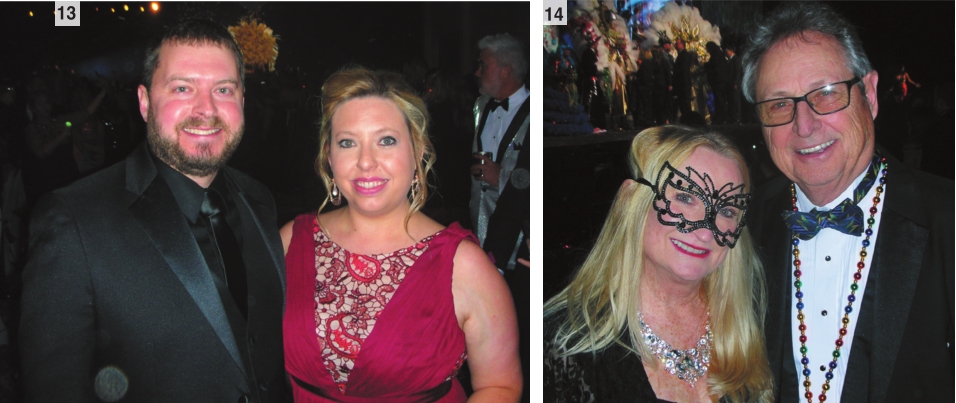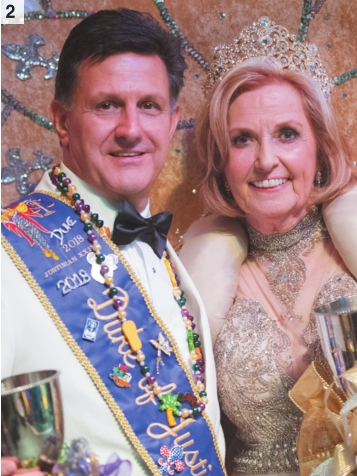 On Jan. 27 at the Shreveport Convention Center, the Krewe of Gemini Grand Bal and Tableau XXIX was themed “For Those About to Rock, Gemini Salutes You.” Tracy Myers Herrin is captain. Colorful and elaborate costumes were used to take guests down rock ‘n’ roll memory lane. Herb Doughty reigned as king, and queen was Sue Moses Cooksey. –Mary Ann Van Osdell