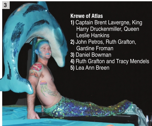 The Krewe of Atlas “Going Deep” theme featured royalty as a coral angelfish, green horned eel, jellyfish, clownfish, bubble anemone, octopus, tiger shark and lionfish. The tableau was held on Jan. 27 at the Shreveport Convention Center. The king and queen were from the lost kingdom of Atlatis. Dancing music was provided by SideFX. Chris Druckenmiller of Pennsylvania, the brother of King Atlas X, gave the invocation. The coronation was held last summer at Cross Lake to keep with the water theme. The krewe found its way to the lost kingdom of Atlatis when the king opened a treasure chest that revealed a diamond-jeweled hat which he presented to the captain and told him it was magic. It provided the portal through which guests traveled to reach the kingdom beneath the sea. – Mary Ann Van Osdell