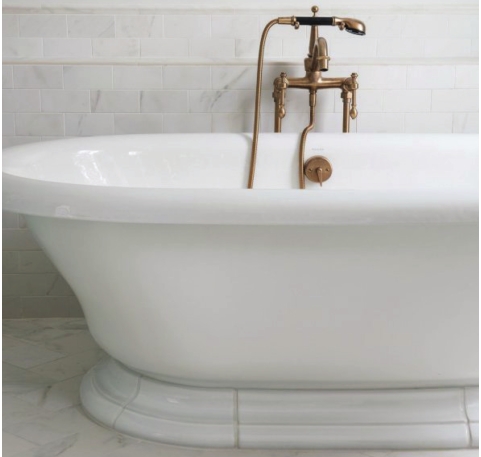 “Matte black, matte gold and polished nickel finishes are really popular right now,” she said. “Also, freestanding tubs are the new thing in bathrooms. Regarding lighting, thoughtful simplicity paired with LED is very desirable right now.”
