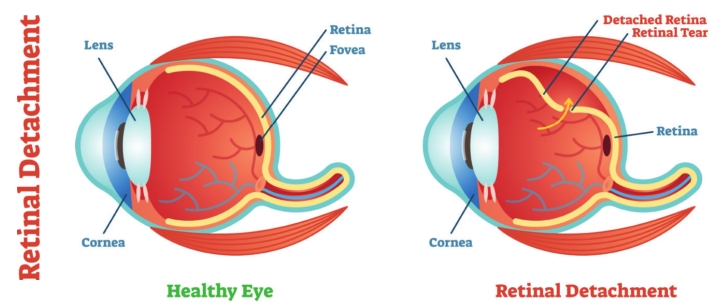 The National Eye Institute defines a retinal detachment as when the light-sensitive layer of tissue that lines the inside of your eye lifts or pulls from its normal position. Approximately one in 10,000 people suffer a detached retina.