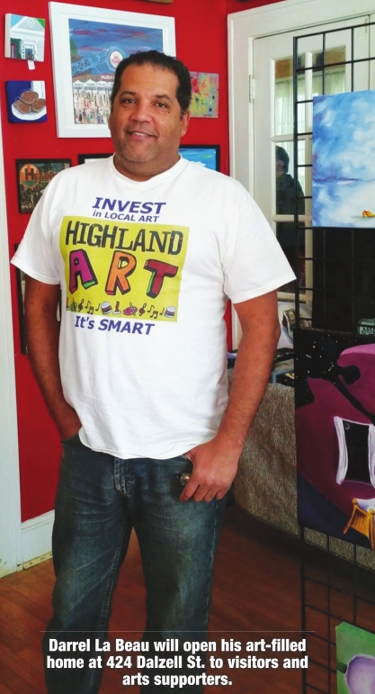 Across the street at 434 Dalzell, award-winning artists Kathryn Usher and James Mark will exhibit textile arts and wire sculptures, while tickling taste buds with their original gumbo.