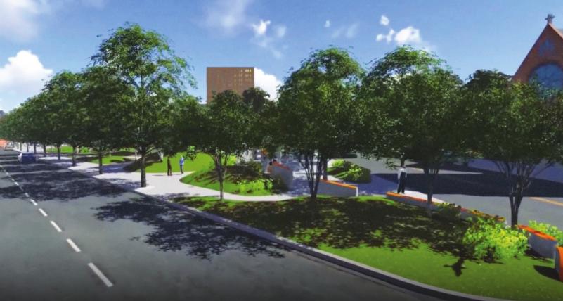 The new design uses the $1.2 million for the demolition of the concrete lots and the dilapidated former Commercial College building, and the construction of the park infrastructure with its sustainable water irrigation bioswale system, “Great Lawn,” Food Truck Cafe area, walking paths and a Louisiana Garden with a babbling brook.