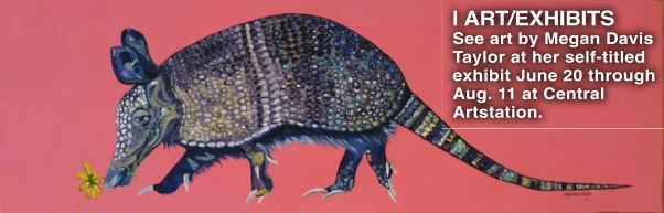 JUNE 20-AUG. 11: ARTIST MEGAN DAVIS TAYLOR. “A Few of My Favorite Things” featuring furry (or feathery) friends. Portraits of chickens, alligators, possums and pets will be exhibited. Taylor will also live-paint an exotic chicken during the opening reception 5:30-7 p.m. Central Artstation, 801 Crockett St., Shreveport. Visit www.shrevearts.org.
