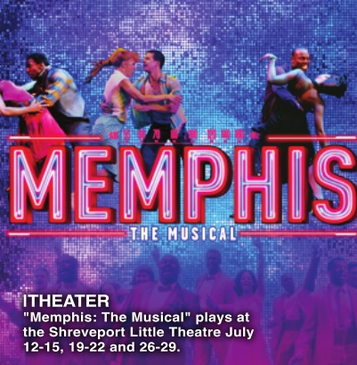 JULY 12-15, 19-22, 26-29: MEMPHIS: THE MUSICAL. Inspired by actual events, this musical is about a white radio DJ who wants to change the world and a black club singer who is ready for her big break. $25. 7:30 p.m.; 2 p.m., Sunday performances. Shreveport Little Theatre, 812 Margaret Place, Shreveport. Visit www.shreveportlittletheatre.com.